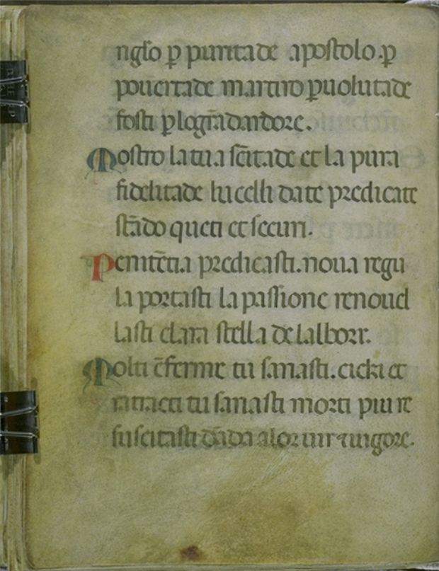 E così via il testo prosegue con vari riferimenti alla vita di S. Francesco, dalla sua missione “de salvar da perdemento molti k’eran peccatori”, fino a portare nel mondo “k’era entenebrato” un “gran splendore”. Il testo poetico non poteva mancare inoltre di far riferimento ai tre Ordini (oggi diremmo i Frati, le Clarisse e l’Ordine Francescano Secolare, per l’appunto terz’Ordine) da lui fondati a gloria della Trinità, che continuano a fare nel mondo “fructo cum aulore”.